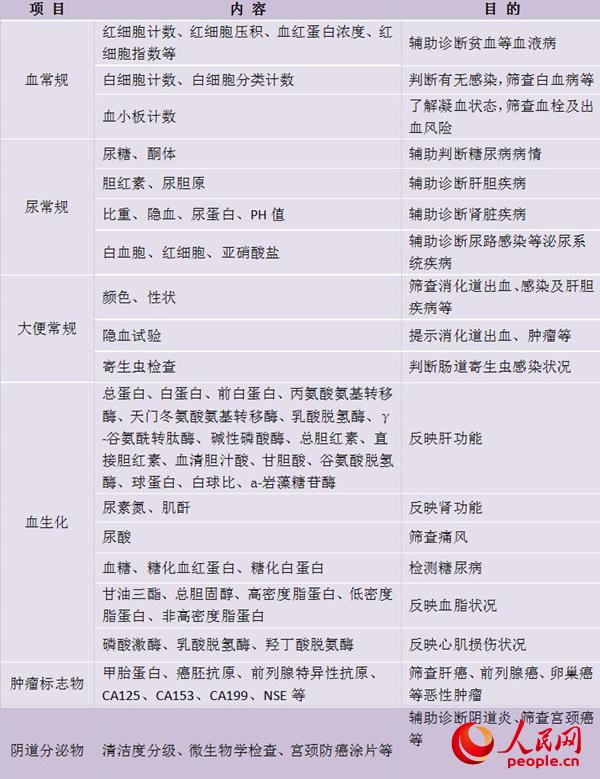 其实,在体检套餐的选择上,“适合自己的才是最好的”。普通的健康体检能够覆盖一般人群的体质检查和疾病筛查;有一些专项检查主要针对某些特定疾病或高危人群,并不是必要的。普通的健康体检一般包括个人信息及健康基本情况、体格检查、实验室检查、医疗仪器检查四个部分,以下四张图表列出了这些检查的内容和目的。