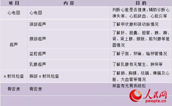 以上四张图表列出的就是普通健康体检套餐中包含的项目,体检者应该根据自身情况,在医生的指导下选择合适的套餐,不必盲目追求体检项目的“高大全”。那么,在选择体检套餐的时候,具体应该着重考量哪些因素呢?