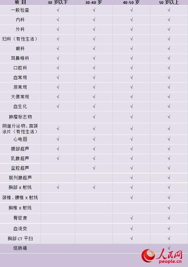 不同年龄阶段人群大致建议选择的体检套餐(施佳华 制图)