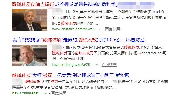 这个罗伯特•杨何许人也?他是美国自然疗法学说人之一,写过一本畅销书叫《pH奇迹》,提出疾病发生是源于“酸性体质”,并提出通过加强碱性饮食可实现健康保持和疾病治疗的目的。