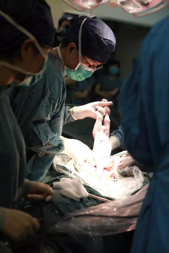 足月的胎儿对移植子宫造成的压力,让分娩的风险成倍增加,陈必良教授团队选择在孕33+6周进行剖宫产手术,迎接这个新生命的到来。2019年1月 20日,陈必良教授主刀施行剖宫产手术,刘朵朵教授配合手术,麻醉科陈敏教授施行麻醉。术中,采取腹壁纵切口完成子宫下段剖宫产,探查确认移植的子宫动静脉缝合口、韧带等恢复良好,手术历时1小时6分钟圆满成功。新出生的宝宝身体各指标正常,体重2kg,身长48cm,Apgar’s评分:1分钟10分,5分钟10分,10分钟10分。剖宫产手术结束后,专家团队没有立即摘除子宫,小两口还计划着孕育二胎。