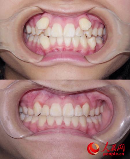 虎牙患者在正畸治疗前、正畸治疗后的牙齿对比图(闫伟军供图)