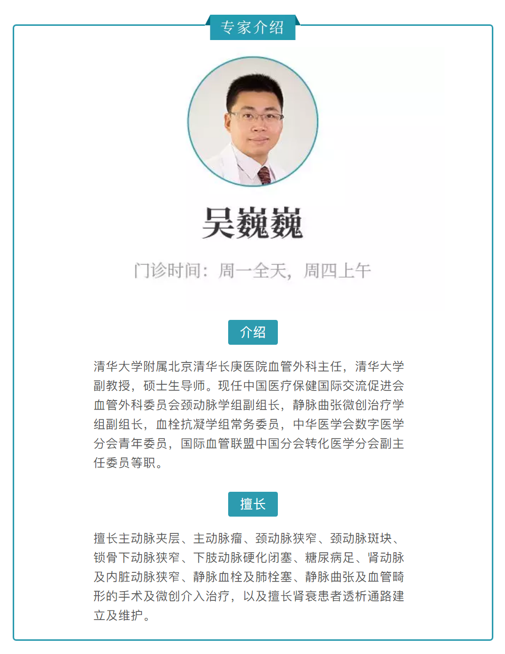 文字:清华大学附属北京清华长庚医院血管外科主任、清华大学副教授吴巍巍
