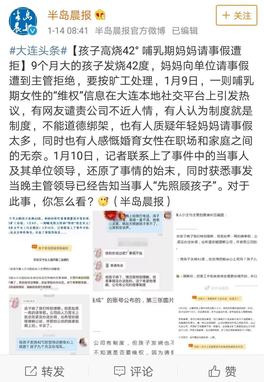 9个月大的孩子发烧到42℃,妈妈向单位请事假遭到主管拒绝,还说如果擅离职守,就要按旷工处理……