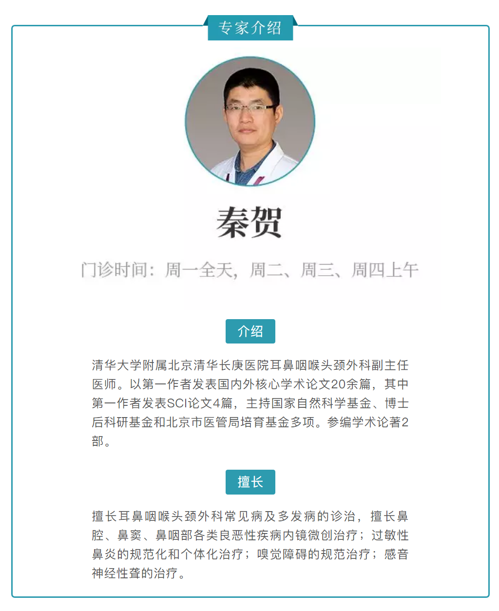文字:清华大学附属北京清华长庚医院耳鼻咽喉头颈外科副主任医师秦贺