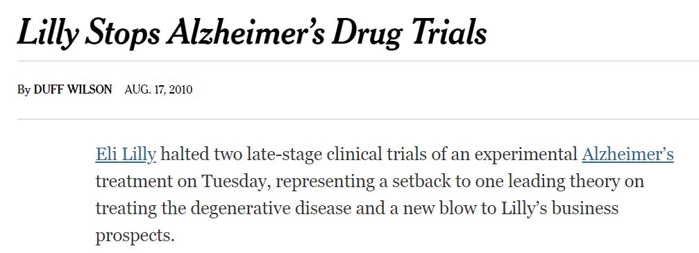 其实,不只是百健制药,从2001年开始,各大药厂研发的各种基于Aβ理论的疗法纷纷在临床试验中下马,有200多个类似的临床试验都失败了。