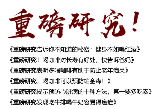 这些结论真的靠谱么?我们是不是应该立刻开始每天灌咖啡,喝红酒,只吃素,坚决不碰红肉牛奶了?