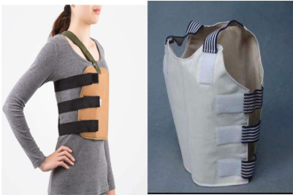 3.肋骨固定带。在人们受到外伤时,肋骨能保护内脏免受外力的直接、暴力冲击,所以肋骨骨折也很常见。绝大多数肋骨骨折移位不明显,都可以采用保守治疗,此时用石膏固定会压迫呼吸,所以大多数情况会采用肋骨固定带来固定肋骨骨折处。