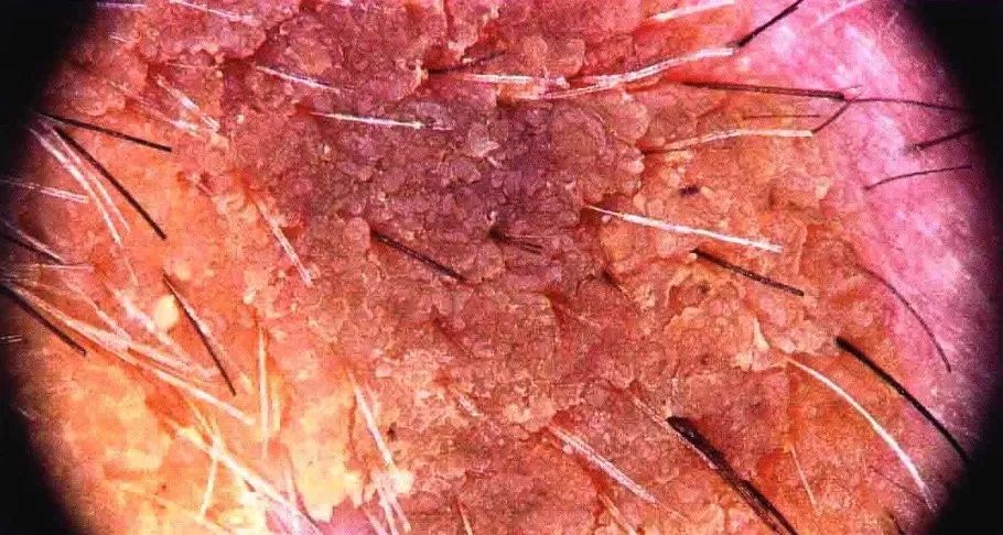 随着斑增大会形成一层油脂性的厚痂,“脂溢性”由此而来。而“角化”指的则是皮肤毛囊皮脂腺开口处有角化现象,形成了特征性的毛囊角栓。