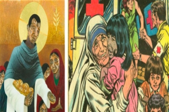 近代天主教圣人形象,左为圣马丁(St Martin de Porres),右为圣特雷莎(即人们熟悉的特蕾莎修女,Sister Mary Teresa after St. Therese of Lisieux.),她有名言:“穷人是非常了不起的人” 。