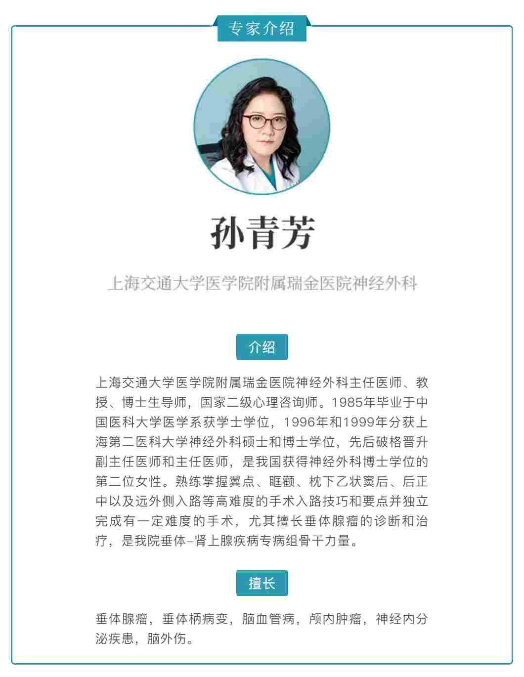 文字:上海交通大学医学院附属瑞金医院神经外科主任医师孙青芳