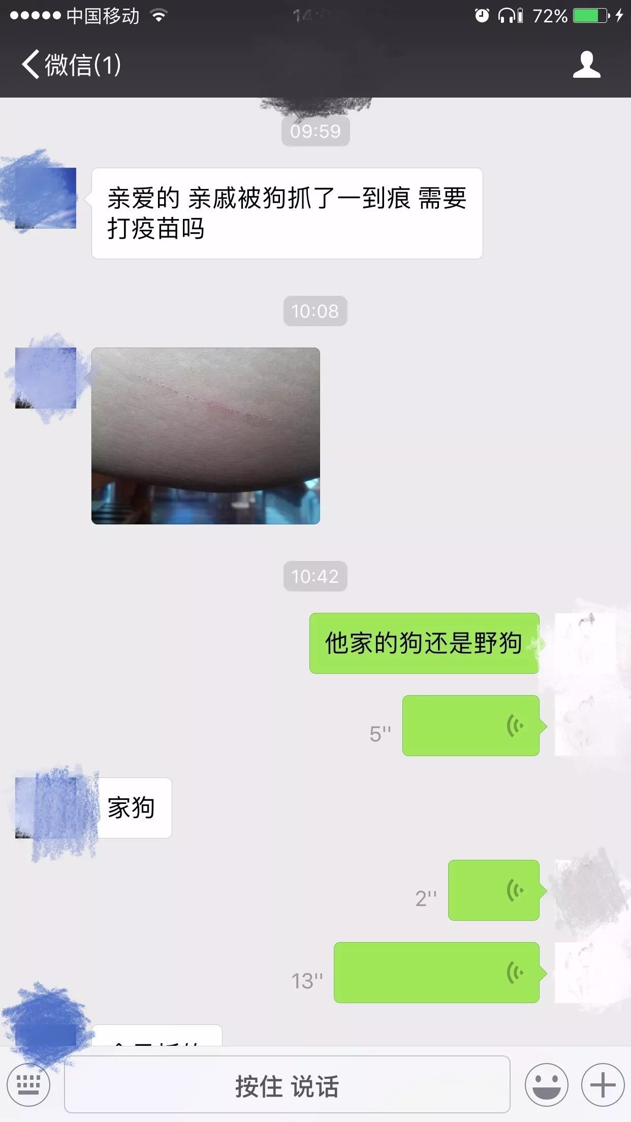 通过照片我们可以看出,咨询的患者属于Ⅱ级暴露,是需要进行伤口处理及接种狂犬病疫苗的。