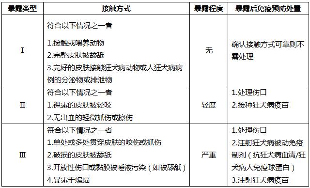表1 狂犬病暴露后免疫预防处置
