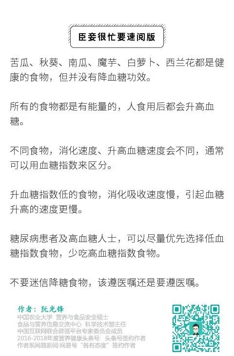 苦瓜、西兰花、萝卜能降血糖?真的存在降糖食物吗?阮光锋营养师 2020-03-17 |