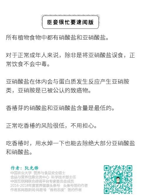 很多朋友看到后非常担心,纷纷留言:需要担心香椿中的硝酸盐和亚硝酸盐吗?真的会致癌?还能放心吃香椿吗?今天我们来聊聊香椿。