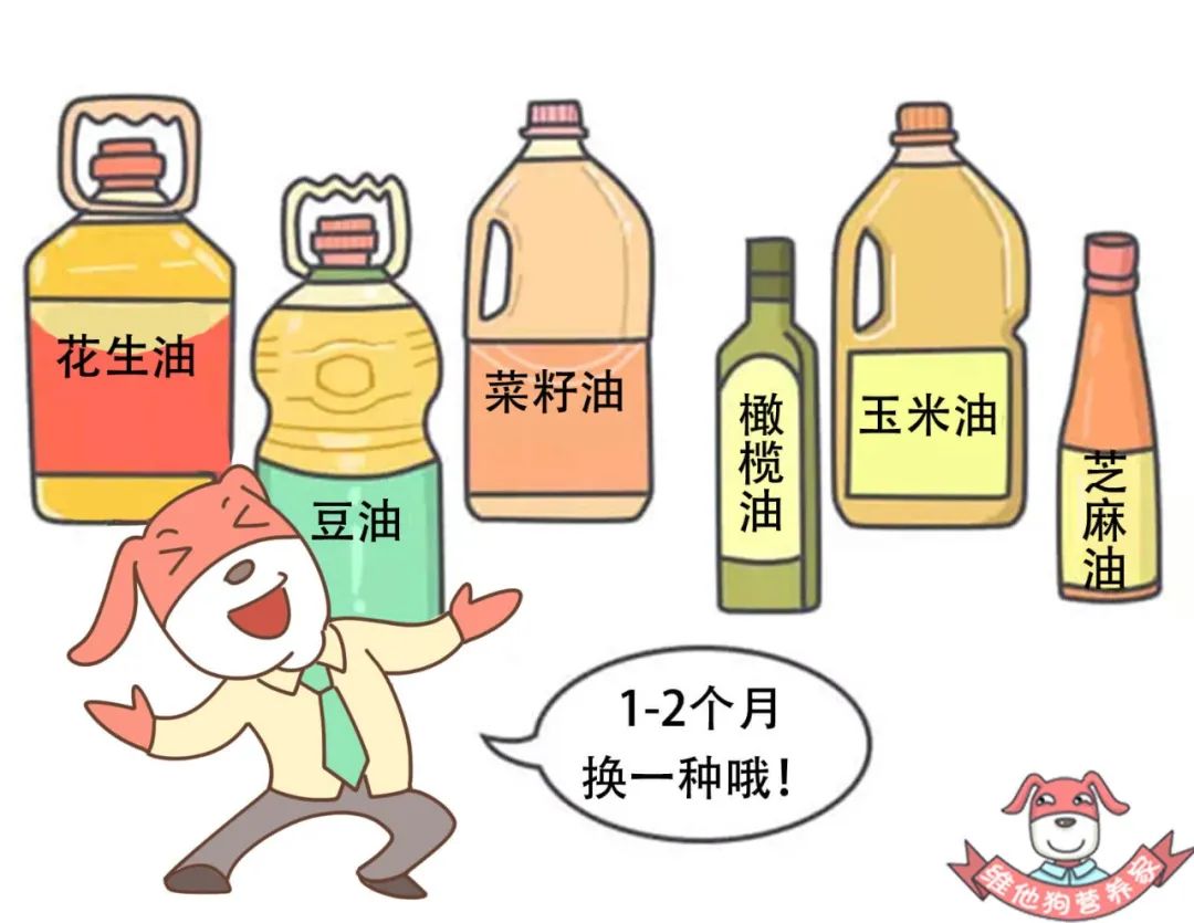 狗狗建议,食用油的种类最好是1-2个月换一次,比如这个月吃葵花籽油,下个月咱就买花生油。
