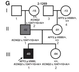 对于这16个找到了临床相关突变的家庭,我们提供了直接的帮助,比如说,G号家系(图5),通过全基因组测序,找到了致病基因AFF2。