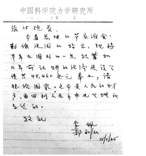 郭永怀夫妇早年留学美国,1956年放弃在美国康奈尔大学的优越物质条件,响应祖国号召,冲破重重阻力回国,郭永怀就任中科院力学所研究员,李佩则就近在中科院西郊办公室工作。1965年1月12日,李佩、郭永怀致信中国科学院副院长张劲夫,希望将自己在国外以及回国之后的多年积蓄捐赠给国家,支援国家建设:“本着总理的节衣缩食、勤俭建国的指示,现将早年在国外的一点积蓄和几年前认购的经济建设公债共48460余元奉上,请转给国家。这本是人民的财产,再回到人民手中也是理所当然的。”字里行间流淌的是为了国家可以奉献一切的无私情怀,他们对于自己的要求却是节衣缩食和勤俭,即使对他们唯一的女儿郭芹也从没有半点娇惯。48460元,在当时可谓一笔巨款,彼时普通人的月工资仅仅几十元,即使身为一级研究员的郭永怀月工资也不过375元。中科院力学所党委书记杨刚毅找到郭永怀专门就此事与他商议,请他考虑是否全部捐赠,问他家庭生活是否有困难。郭永怀态度非常坚决,要求全部捐赠,表示家庭生活没有任何困难。事实并非如此。1968年,郭芹到内蒙古呼伦贝尔盟插队时需要一双布鞋,在写给父亲的信中提及此事,郭永怀给女儿的回信中说:“布鞋暂没有,你是否画个脚样寄来,待有了货一定买。这里有一种翻皮棉鞋,本想代你买一双,因为没有尺寸,没敢买。”之所以没敢买,一则为了不造成浪费,大概也有手头上不宽裕的因素吧。然而,时过不久,郭永怀因飞机失事,再也无法完成对女儿的承诺了!