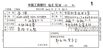 2003年9月18日,建校45周年校庆前夕,中国科学技术大学安排了一场隆重的捐赠仪式,外语教研室离休教授李佩将其先生、中国科大化学物理系首任系主任郭永怀生前荣获的“两弹一星”功勋奖章捐赠给中国科大校史馆永久珍藏和展示。图片为我们显示,居于左侧的时任中国科大校长朱清时院士代表学校从满头银发的李佩教授手中接过沉甸甸的奖章,居于右侧的时任校党委书记郭传杰研究员鼓掌表示祝贺,李佩教授笑意盎然地看着刚刚亲手送出去的奖章,像是为孩子找到了最好的归宿一样心满意足,自成一幅“赠人玫瑰、手有余香”的生动画面。