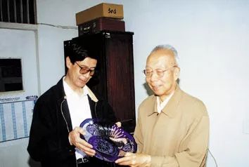 1998年,中国科学院上海分院院长汤章城祝贺王德宝(右)80华诞