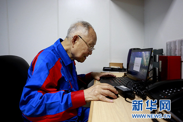 汪品先院士在“探索一号”科考船上工作(5月11日摄)。新华社记者 张建松 摄