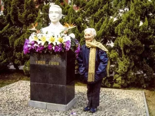 李佩生前在郭永怀雕塑前的合影