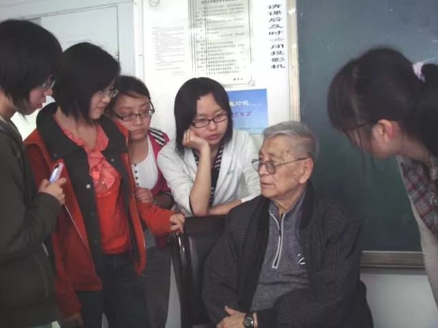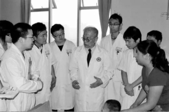 2010年,王翰章与青年医生分析病案,时年91岁。