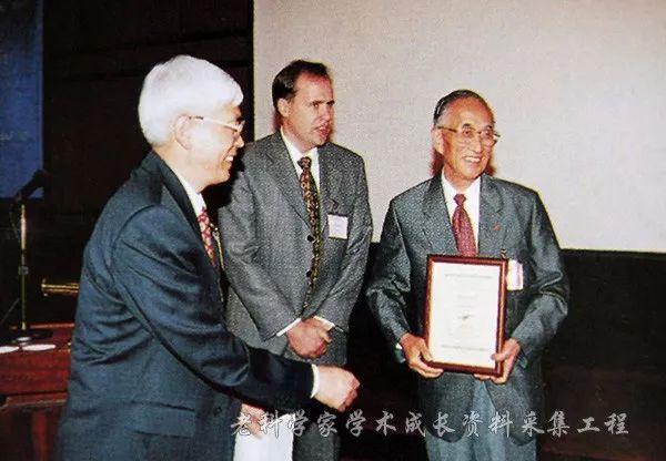 1999年6月,国际疲劳大会IFC授予颜鸣皋(右一)荣誉会员称号