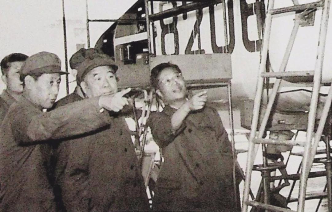 1983年 顾诵芬院士陪同空军副司令员王定烈观看歼8Ⅱ样机