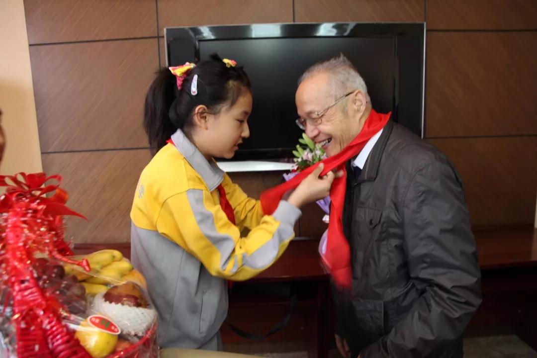 南磨房中心小学学生代表为顾诵芬院士带红领巾