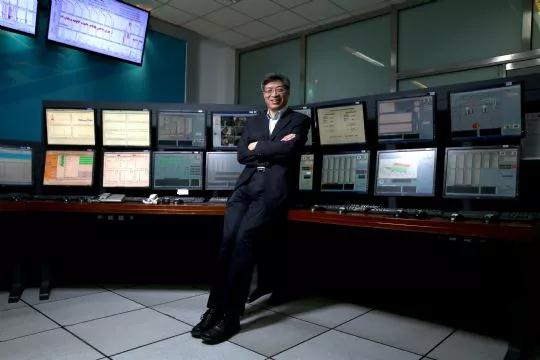 陈和生院士在北京正负电子对撞机国家实验室的控制室里