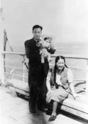 ■ 1948年,钱三强何泽慧夫妇抱着女儿在归国邮轮上