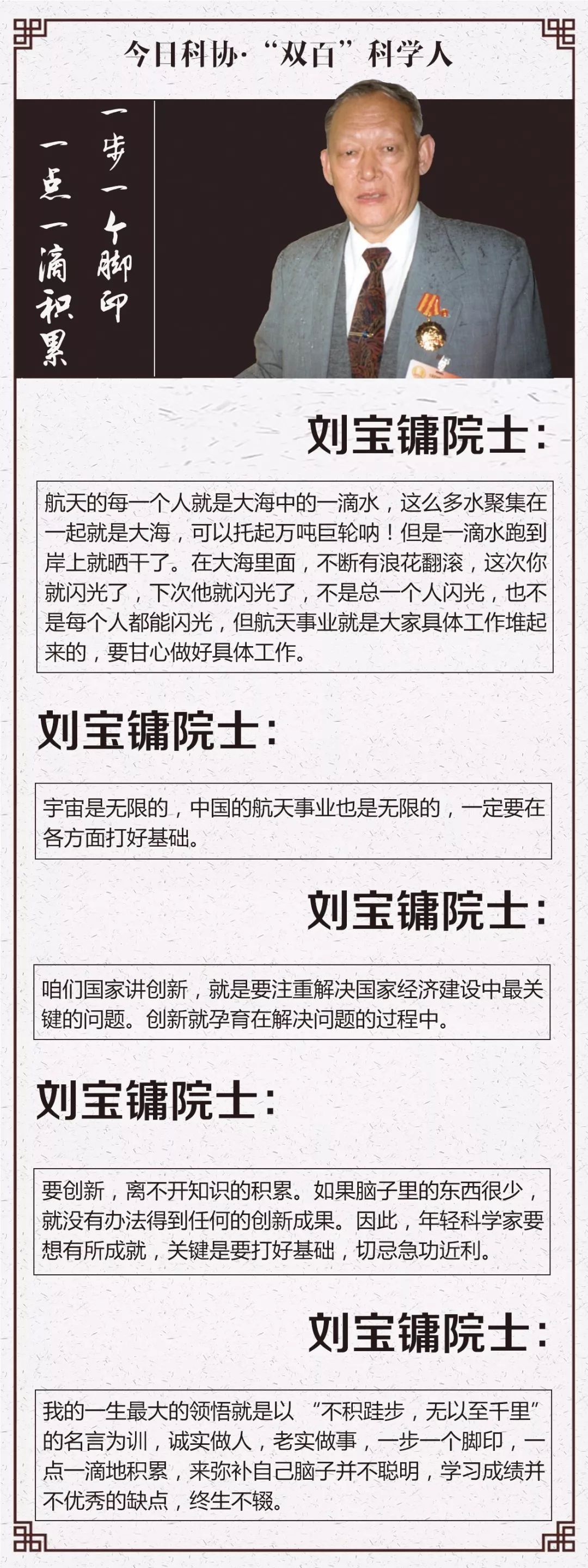 航天的每一个人就是大海中的一滴水,这么多水聚集在一起就是大海,可以托起万吨巨轮呐!但是一滴水跑到岸上就晒干了。在大海里面,不断有浪花翻滚,这次你就闪光了,下次他就闪光了,不是总一个人闪光,也不是每个人都能闪光,但航天事业就是大家具体工作堆起来的,要甘心做好具体工作。
