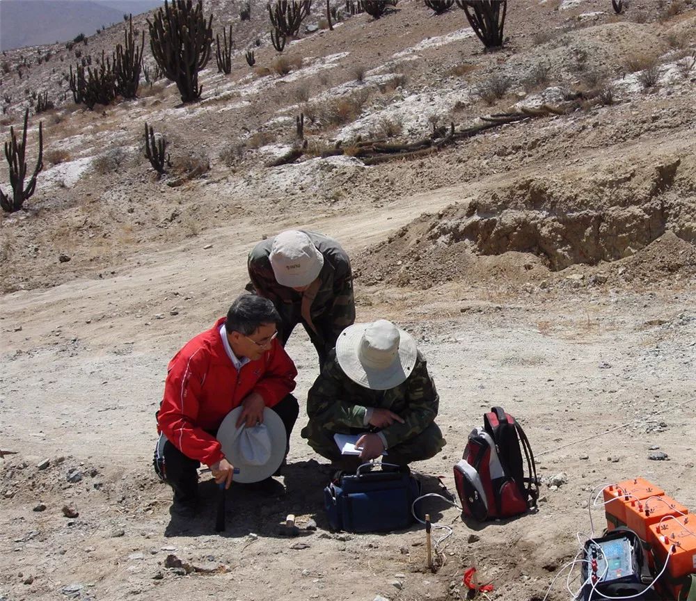 何继善院士(居中)在秘鲁铁矿勘探现场