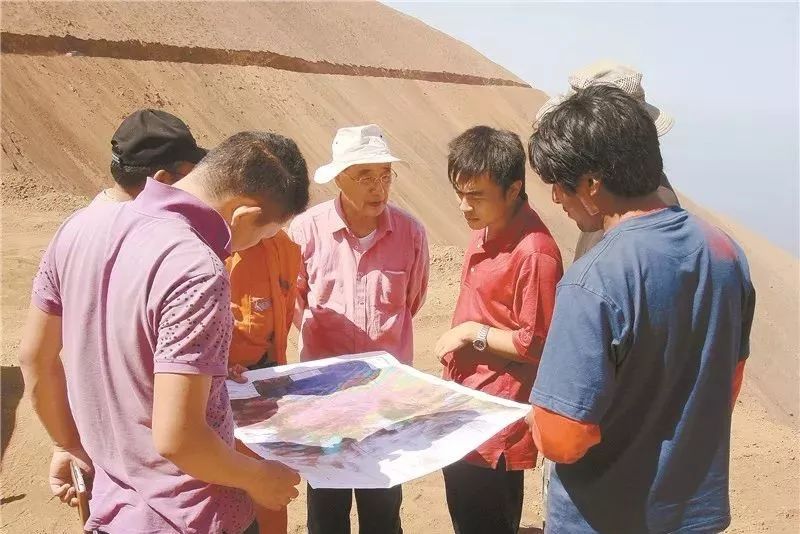 何继善院士在野外进行地质勘探工作