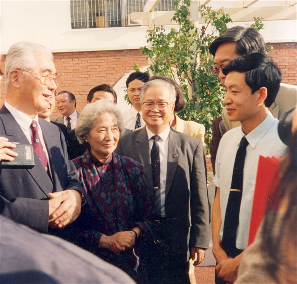 付小兵院士(右一)在西班牙马德里留学期间受到时任国家副主席荣毅仁的亲切接见