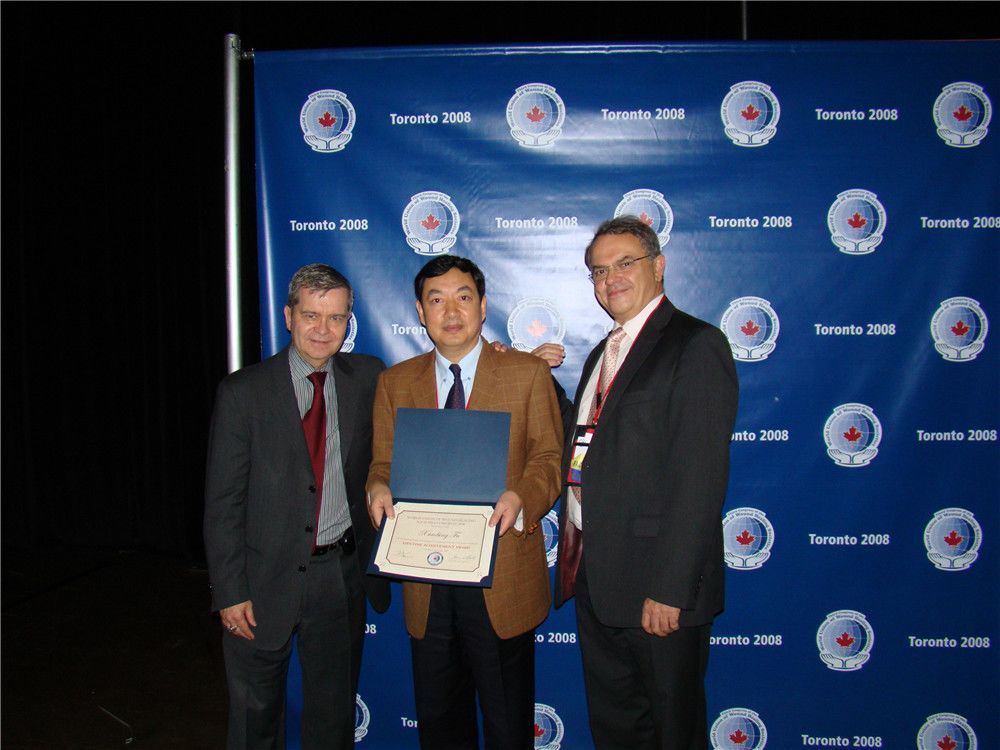 付小兵院士(中)在加拿大召开的第三届国际创伤愈合大会上获得“国际创伤愈合研究终身成就奖”