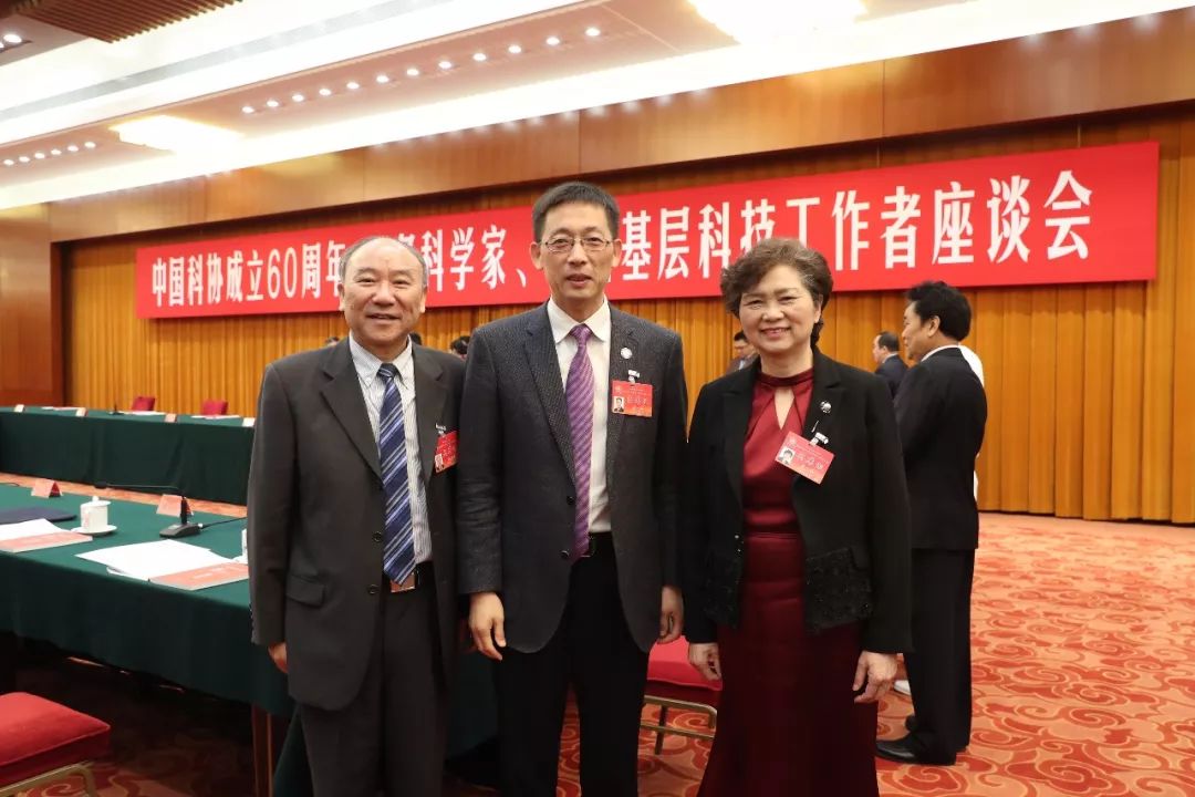 郑树森院士(左)、施一公院士(中)和李兰娟院士(右)在中国科学技术协会成立60周年百名科学家、百名基层科技工作者座谈会上的合影