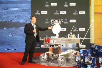 吴伟仁院士在嫦娥四号任务月球车全球征名活动启动仪式上介绍嫦娥四号任务月球车