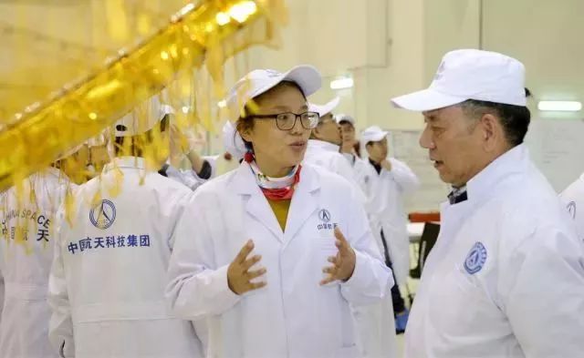 吴伟仁院士(右)到航天科技集团五院西安分院检查嫦娥四号中继卫星研制情况
