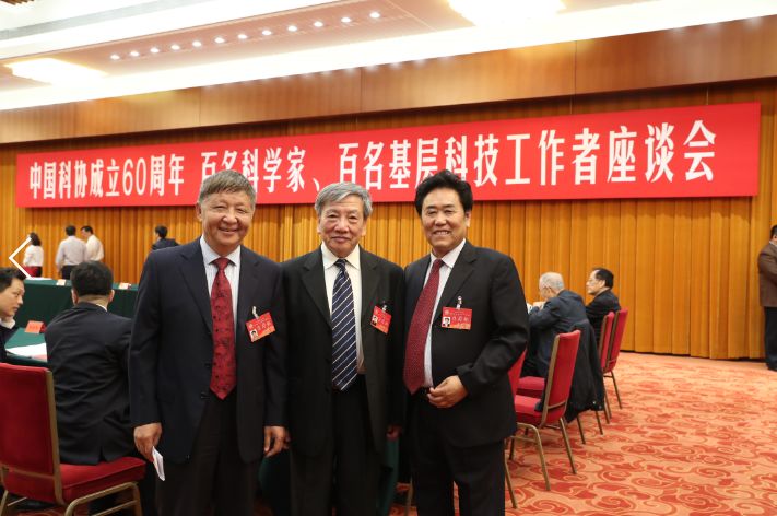 王成善院士(左)与刘嘉麒院士(中)、多吉院士(右)在2018年中国科协成立60周年百名科学家、百名基层科技工作者座谈会上合影