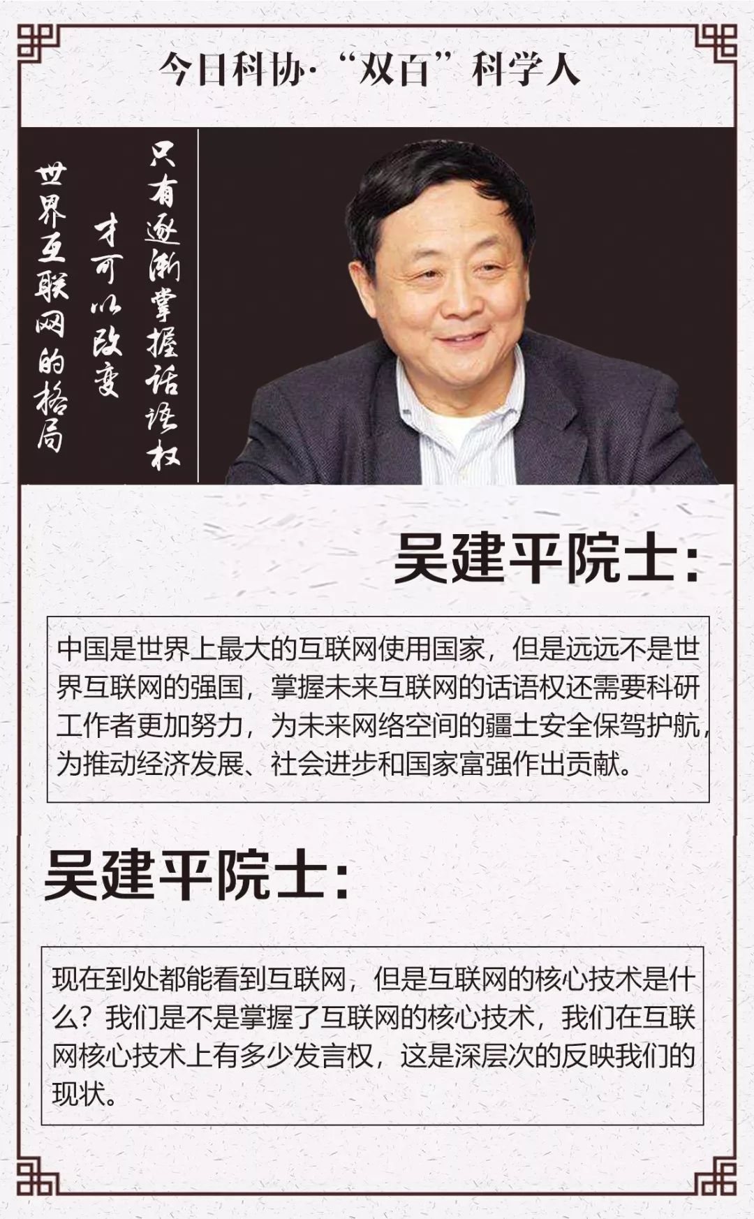吴建平院士:在计算机网络教学与科研一线坚守30余载今日科协 2018-10-19 |