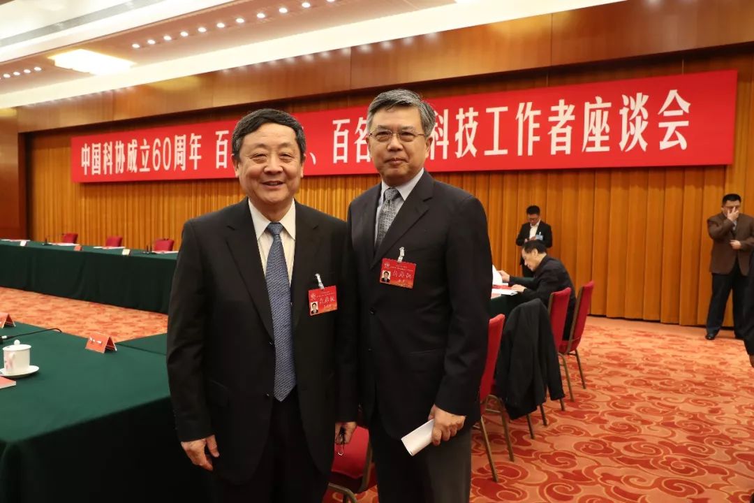 吴建平院士(左)与龚克教授在2018年中国科协成立60周年百名科学家、百名基层科技工作者座谈会上