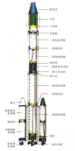 “长二捆”的总体结构示意图(来源:《长征系列火箭的发展历程》文章)