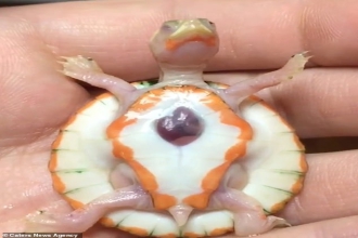 据英国《每日邮报》2月18日报道,美国一只名叫“希望”的乌龟宝宝患有白化病,且自降生起,其心脏就长于体外。尽管身体有众多的缺陷,这只小乌龟还是顽强地存活了下来。