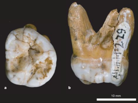 确定“丹尼索瓦人”身份的臼齿(图源:DavidReich et al., 2010)