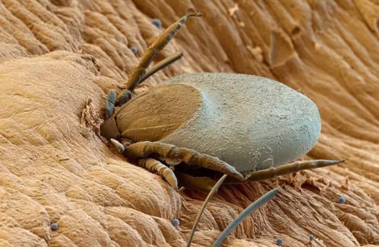 电子显微镜下一只蜱虫正往皮肤下钻……(图片来源网络)