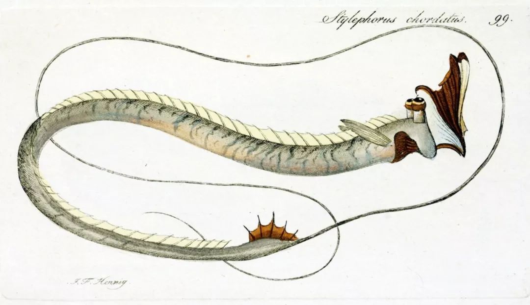 外形奇特的鞭尾鱼,双眼突出向上,英文叫“管子眼”(tube-eye)。J. F. Hennig, Public Domain|Wikimedia Commons.