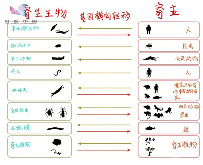 寄生生物与寄主之间的基因转移,来源:作者自制