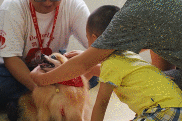 它们教的科目其实是「生命教育」,换句话说,它们负责教导学生如何与动物相处。同样也需要经过严格考试,「狗狗教师」们佩戴着印有「狗狗教师」标志的领巾,在志愿者们的带领下,到各个中小学和幼儿园里和孩子们一起上课。
